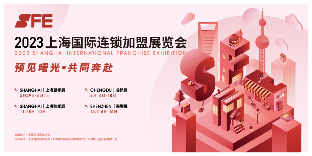 SFE上海国际连锁加盟展览会创办于2005年,由上海连锁经营协会,上海博华国际展览有限公司和上海伊比逊会展有限公司共同主办的综合业态加盟投资专业展会,涵盖餐饮、零售、服务和连锁资源四大板块中的120+市场主流细分业态,集店型考察、产品和服务体验、活动交流及商务洽谈为一体,为连锁加盟品牌和专业观众之间提供精准高效的加盟投资配对服务,推动国内连锁行业的健康有序发展。